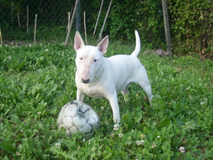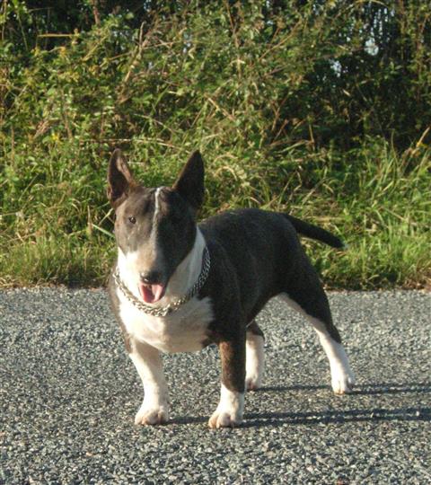 le champion de france Keeper Von Der Alten Veste ,mâle bull terrier Miniature